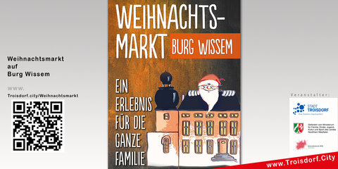 Die Stadt Troisdorf wünscht viel Vergnügen beim Weihnachtsmarkt auf Burg Wissem.