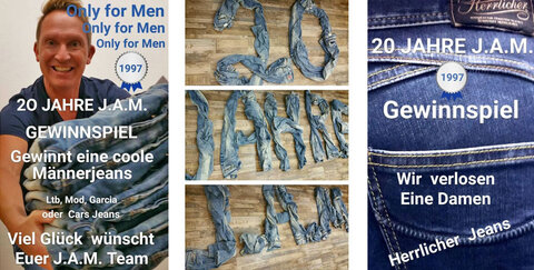 20 Jahre J.A.M. in Troisdorf - wenn das kein Grund zum feiern ist! Beim Gewinnspiel könnt ihr eine coole Herrenjeans (bis einschließlich Größe 36) oder eine Herrlicher Damenjeans (bis einschließlich Größe 31) gewinnen!