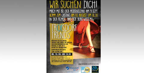 Gesucht sind weibliche und männliche Models, die auf dem Laufsteg die Kollektionen und Accessoires führender Troisdorfer Designerinnen und Einzelhändler einem großen Publikum präsentieren möchten. Das Casting findet statt am Mittwoch, 10. August, 18.30 Uhr, in der Remise der Burg Wissem. Eine Jury aus der Geschäftswelt wird die Auswahl unter den Kandidatinnen und Kandidaten treffen. Dafür anmelden kann man sich unter info@troisdorfaktiv.de.