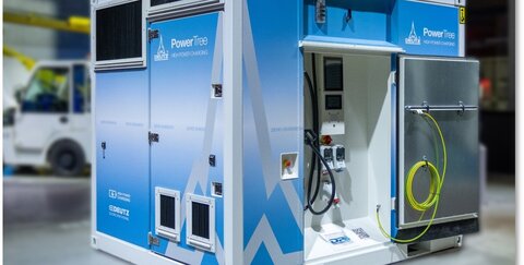 Der DEUTZ PowerTree ermöglicht nicht nur Privatpersonen ihre Elektrofahrzeuge schnell aufzuladen, sondern bietet aus Entwicklersicht vielfältige Einsatzmöglichkeiten darüber hinaus: Dank seines integrierten Speichers kann der mobile Schnelllader auch ohne Anschluss an ein Strom-Verteilnetz betrieben werden. Dies macht ihn besonders interessant für Baustellen, große Firmengelände und Festivals, denn die Schnellladesäule bietet eine Ladeleistung von bis zu 150 Kilowatt mit CCS2 DC-Schnellladung und einer Ladespannung von mehr als 800 Volt.