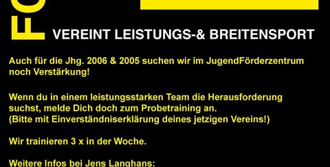 Das JugendFörderzentrum sucht Verstärkung für die Jahrgänge 2006 & 2005!