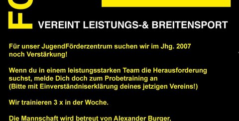 01.06.2021: Das JugendFörderzentrum sucht im Jhg. 2007 nach Verstärkung!