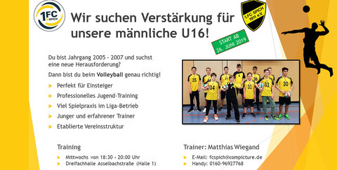 Für die kommende Saison 2019/20 gründet der Verein mit dem 26. Juni 2019 eine neue Trainingseinheit für den männlichen Volleyball-Nachwuchs!