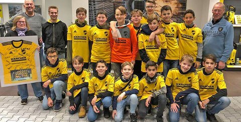 Die U13/2 wird diesen Trikotsatz bereits in der Rückrunde mit stolzer Brust tragen und somit beiden Traditionsunternehmen - Kärcher und den Verein - damit repräsentieren. Der Verein hofft auf eine langjährige Partnerschaft und bedankt sich auf diesem Weg recht herzlich für die Unterstützung!