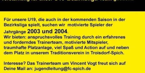 18.05.2021: Verstärkung für das U19-Bezirksliga-Team gesucht!