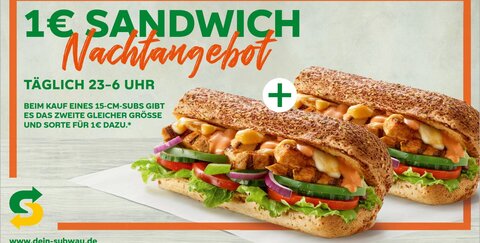 Und das beste: Subway ist auch Nachts mit tollen Angeboten für Sie da