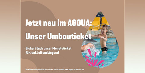 Ab sofort gibt es für Kinder und Jugendliche bis 16 Jahre das Umbauticket für 45 Euro monatlich. Gültig von Juni bis August 2019. Für ein besonderes Schwimmvergnügen im AGGUA-Hallenbad.