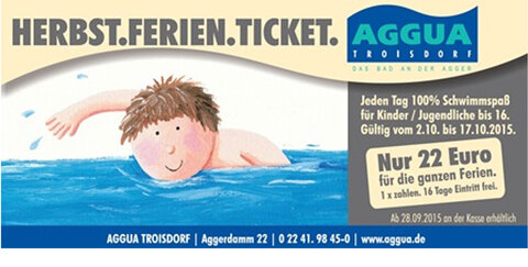 Ab Montag, 28. September kann das Ticket an der Kasse im AGGUA TROISDORF für nur 22 Euro erworben werden.