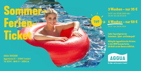 Beide Ticketvarianten sind ab Montag, 09. Juli 2018 an der Kasse im AGGUA TROISDORF erhältlich.