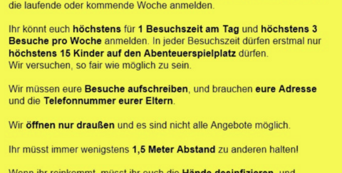 Ab Donnerstag den 4. Juni öffnet der Abenteuerspielplatz endlich wieder für euch