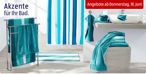 Aldi bietet euch ab Donnerstag viele Ideen rund um die Badgestaltung: Von Handtüchern, über Duschvorhand und Badematte bis zu Armaturen!