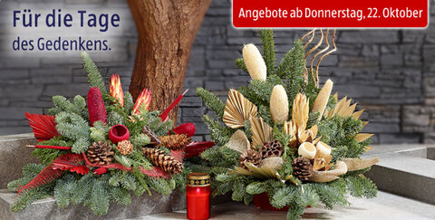 Aldi bietet euch ab Donnerstag Grabschmuck und Kerzen für die Tage des Gedenkens.