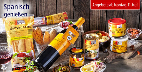 Oliven, Thunfisch, Salami, Mandeln, Tortillas und viele andere spanische Spezialitäten - jetzt bei Aldi!