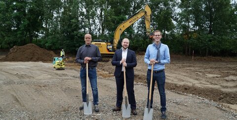 Bereits seit über zehn Jahren produziert und vertreibt das Familienunternehmen maßgeschneiderte Aluminiumprodukte, wie z.B. Fensterbänke und Balkonaustrittprofile. „Damit wir weiterhin ein verlässlicher Partner für Bauprojekte sein können und unsere Verantwortung in der Region, insbesondere in der Ausbildung zukünftiger Fachkräfte, nachkommen können, benötigen wir mehr Lagerfläche und Büroräume“, berichtet Simon Knape. TROWISTA-Wirtschaftsförderer Fabian Wagner hatte die Flächen in der Nachbarschaft erfolgreich vermittelt. Den Baubeginn nahmen Simon Knape und Fabian Wagner nun zum Anlass, um sich mit der Investorengemeinschaft des neu entstehenden Gewerbehallen-Büro-Komplexes vor Ort zu treffen.