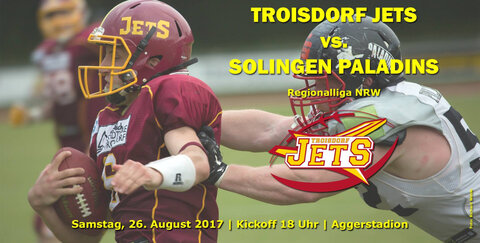Am Samstag, den 26. August 2017, empfangen die Troisdorf Jets im heimischen Aggerstadion die Solingen Paladins.