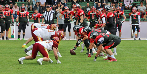 Vor allem der Touchdown unter höchstem Zeitdruck wenige Sekunden vor dem Halbzeitpfiff zeigt, dass die Jets auch unter Druck gut funktionieren. Mit nur 38 Sekunden Restspielzeit kam die Offense noch einmal aufs Feld und Niklas Remke erzielte mit auslaufender Uhr nach einem Pass von Jannik Nowak die ersten Punkte der Jets (PAT Sebastian Weidenbruch). Auch in der zweiten Halbzeit suchten die Troisdorfer ihren Vorteil im Pass-Spiel und die starke Wide Receiver Crew zeigte, dass dieses Vertrauen durchaus berechtigt war. Auch Tight End Martin Röhrig und Thomas Gieraths durften sich nach Pässen von Nowak über je einen Touchdown freuen (PAT Sebastian Weidenbruch).
