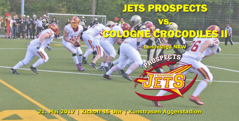Am Sonntag, den 21. Mai 2017, treffen die Jets Prospects auf die Cologne Crocodiles II. Kickoff auf dem Kunstrasenplatz im Troisdorfer Aggerstadion ist um 15 Uhr.