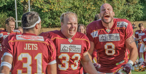 Jetzt ist es offiziell! Nach dem Abstieg in 2014 kehren die Troisdorf Jets im kommenden Jahr zurück in die German Football League 2 (Nord). Der American Football und Cheerleading Verband NRW hat das für den kommenden Sonntag geplante Nachholspiel der Jets in Remscheid heute endgültig abgesagt. Die Partie wird mit 2:0 Punkten für die Troisdorfer Footballer gewertet (20:0 Scores) und damit bleiben die Jets uneinholbar auf dem ersten Tabellenplatz in der Regionalliga NRW. Selbst mit einem Sieg in ihrem letzten Saisonspiel können die ärgsten Konkurrenten aus Bielefeld nicht mehr an Troisdorf vorbeiziehen. Das eigentliche Spiel beim Amboss hätte bereits Mitte Juli stattfinden sollen, musste aber aufgrund einer Platzsperre im Remscheider Stadion Reinshagen abgesagt werden.