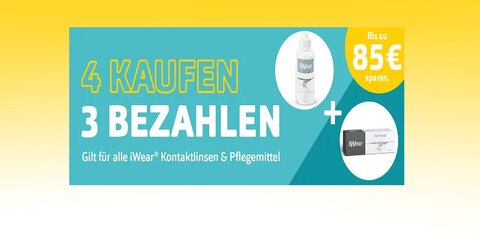 Bei Apollo könnt ihr jetzt 4 Produkte der Marke "iWear" kaufen (z.B. Kontaktlinsen und Pflegemittel) und nur 3 bezahlen!