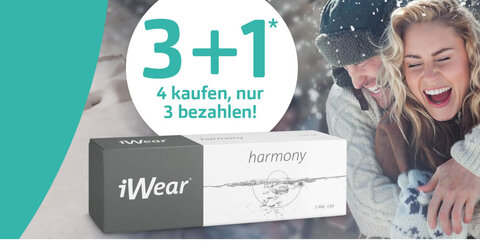Das perfekte Angebot für Kontaktlinsenträger: Kauft vier Pakungen iWear und bezahlt nur drei. Schnell zuschlagen und auf Vorrat für die nächsten Monate kaufen.