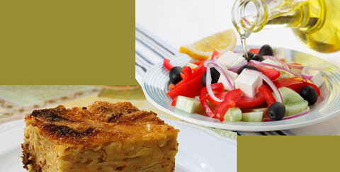 Zum Beispiel "Pastitzio" (Nudel-Hackfleisch-Auflauf) mit einem griechischen Bauernsalat für 4,90 €.