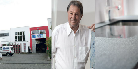 Das lexikale Wissen wundert nicht weiter. Seit 25 Jahren betreibt Karl Jansen Schulter an Schulter mit Bruder Walter Jansen die AZUL Naturstein Handels GmbH. Da sammelt sich Fachwissen an. Einst als reiner Großhandel konzipiert, der sich mit dem Vertrieb von Rohtafelnbefasst, entwickeln die Brüder Jansen nach Bau und Bezug neuer Betriebsflächen das Unternehmen erfolgreich weiter. Heute gehören in der eigenen Fertigungswerkstatt moderne Maschinen wie Brückensägen, Kantschleifautomaten und ein Küchenplattenverarbeitungscenter zur Betriebsausstattung. An der Rotter Viehtrift verarbeitet AZUL folglich eine Vielzahl von Natursteinprodukten. Neben Großhandelskunden gehören auch private Käufer zur Stammkundschaft. Für den Objektbau wird aus Troisdorf gar europaweit geliefert. So findet sich ägyptischer Kalkstein von AZUL heute zum Beispiel in der zyprischen Lambouri Winery und über 20.000 m2 brasilianischer