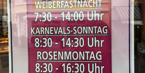 Geänderte Öffnungszeiten an Karneval