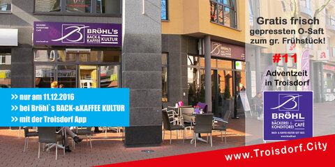 Nur am 11.12.2016, bei Bröhl´s Back- und Kaffee Kultur in Troisdorf, unter vorzeigen der Troisdorf App!