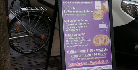 Bei Bröhl könnt ihr jetzt den leckeren Butter-Weihnachtsstollen genießen. Zudem nimmt das Team der Bäckerei eure Bestellung für Heiligabend und Silvester jetzt schon entgegen.