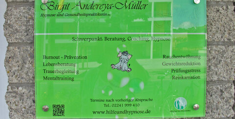 ...bei "Hilfe und Hypnose" in Troisdorf. Birgit Andereya-Müller bietet aus dem Bereich der Gesundheitspraktiker Hypnosebegleitung und Hilfe zu existenziellen Lebensberatungsfragen an.