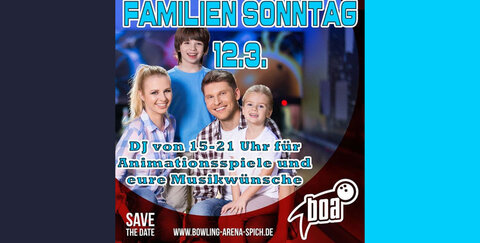 Am 12.03. ist Familientag in der BOA Spich. Von 15 bis 21 Uhr wird sogar ein DJ vor Ort sein, der auf eure Musikwünsche eingeht und Animationsspiele leitet. Freut euch auf euren Family-Day!