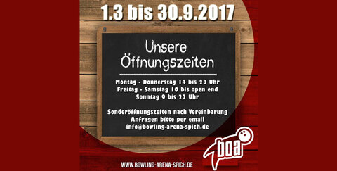 Die Bowling Arena hat ihre Öffnugnszeiten geändert