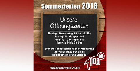 Die Sommerferien beginnen und die Bowling Arena in Spich hat in dieser zeit geänderte Öffnungszeiten:
