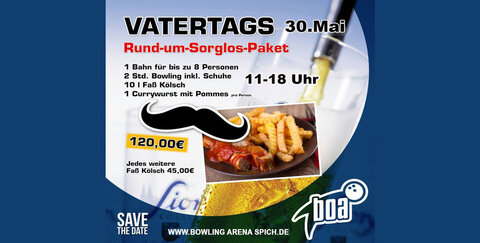Am Vatertag ist die Bowling Arena ab 11 Uhr geöffnet