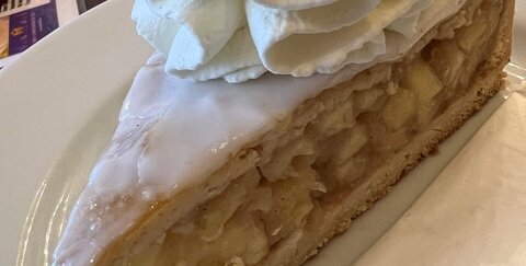Entdecke den himmlischen Genuss von Bröhl's gedecktem Apfelkuchen mit Sahne.