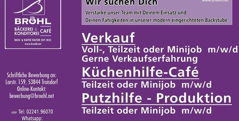 Verstärke das Team von Bröhl's Back und Kaffee Kultur mit Deinem Einsatz und Deinen Fähigkeiten.