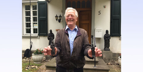 Mit der Auflösung der Einsiedelei müssen die Steinfiguren ihren Weg nach Sieglar gefunden haben. Jedenfalls standen sie sehr lange Zeit links und rechts der Stufen zum Sieglarer Pfarrhaus. Und Dank des Heimat- und Geschichtsvereins stehen sie dort auch weiterhin – als Bronze-Nachgüsse.