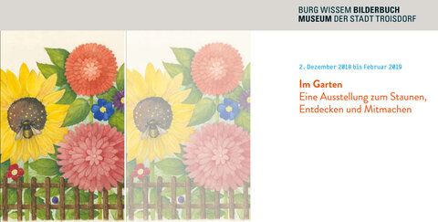 In der Ausstellung "Im Garten" werden Originalillustrationen aus Sachbüchern und erzählenden historischen Bilderbüchern ebenso gezeigt wie pädagogisch aufbereitete Informationen zu Geschichte, Entwicklung und ökologischen Zusammenhängen zum Thema "Garten". Zusätzlich sollen sich die Kinder dem "Garten" in zahlreichen Mitmach-Stationen spielerisch und kreativ nähern.