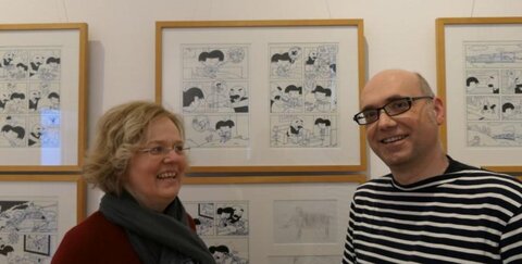 Dr. Pauline Liesen, die Leiterin des Bilderbuchmuseums auf Burg Wissem, hat die Ausstellung gemeinsam mit der Stiftung im sächsischen Plauen zusammengestellt, die viele Originalzeichnungen des Künstlers Erich Ohser alias o.e.plauen verwaltet und ausstellt.