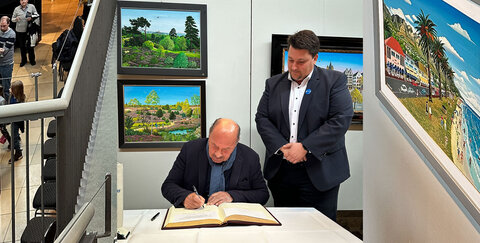 Josef Hawle: Ausstellungseröffnung und Eintrag ins Goldene Buch