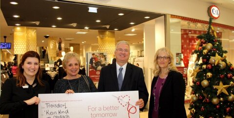 Bereits zum wiederholten Mal engagiert sich C&A Deutschland im Rahmen seiner Weihnachtsspendenaktion für Kinder und Familien in Deutschland mit insgesamt mehr als einer Million Euro. Bundesweit stellt die C&A Foundation den über 500 C&A-Filialen dazu jeweils 2.000 Euro für ein Sozialprojekt vor Ort zur Verfügung. Dieses Jahr erhielt das vorbildliche Troisdorfer Projekt „Keine Kinder im Obdach“ die Zuwendung.