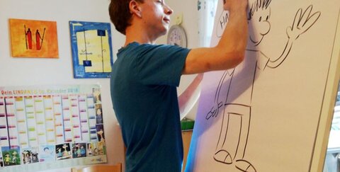 Es heißt, wenn Menschen nicht dieselbe Sprache sprächen, müsse man sich mit Händen und Füßen unterhalten. Eine zusätzliche, universelle Sprache ist das „Sprechen mit dem Zeichenstift“. Unter diesem Motto trafen sich Troisdorferinnen und Troisdorfer, die ehrenamtlich in der Flüchtlingshilfe arbeiten, und Geflüchtete mit dem Kölner Illustrator Christoph Jansen zu einem Workshop. Er wurde organisiert vom Ökumenischen Arbeitskreis „Café International“ und der Flüchtlingshilfe Oberlar.