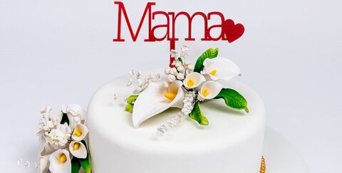 Wie wäre es mit einer selbst gebackenen Torte und den neuen wunderschönen Cake-Topper der Cake Company? Das Motiv "Mama" in rot lässt garantiert das Herz Deiner Mama höher schlagen.