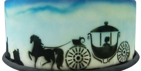 Schöne Airbrush Schablone für eine Fantasy-Landschaft mit Einhorn & Co