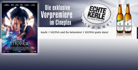 Als Sonderaktion zu diesem Kinostart bietet euch das Cineplex beim Kauf einer Flasche Veltins eine zweite gratis dazu!