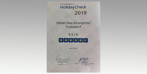 Im Jahr 2019 sind die Bewertungen für das Kronprinz Hotel auf Holiday Check noch einmal besser ausgefallen, als im Jahr davor: Insgesamt konnte das Hotel 5,5 von 6 möglichen Punkten erreichen.