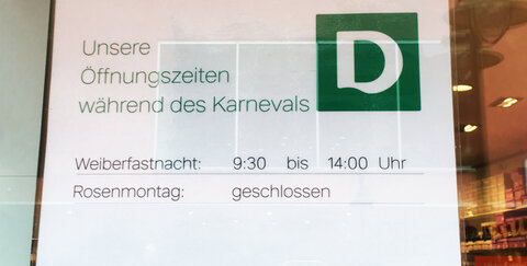 Geänderte Öffnungszeiten an Karneval