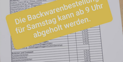 Backwarenbestellung ist am Samstag abholbereit
