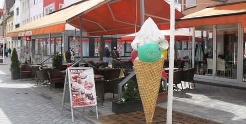 Auf der Sonnenterrasse vom Eiscafe Riviera könnt ihr jetzt ganz nach Belieben aus dem breiten Angebot an feinen Leckereien wählen!
