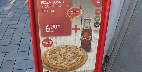 Bestellt nun eine Pizza Tonno und einen Softdrink eurer Wahl (0,33l Dose) und bezahlt nur 6,90 Euro.